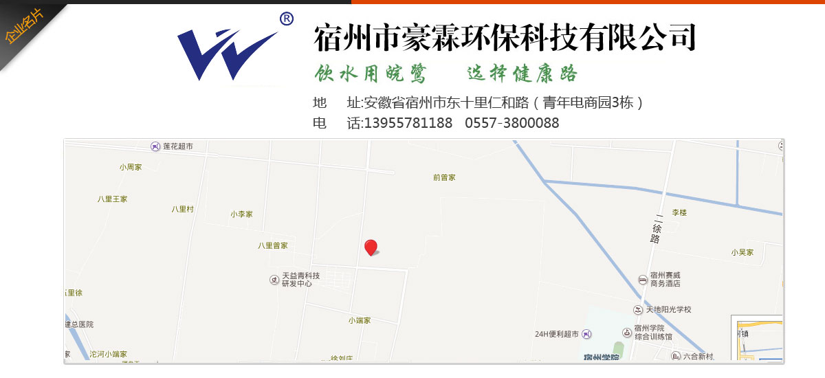 - 宿州市豪霖環??萍加邢薰緦I致力于水處理產品和系統水處理工程,集產品的開發與銷售、工程配套與安裝、技術咨詢與服務于一體的新型環保企業。主營產品:家用、商用純水機系列,能量活水機系列,家用、中央用凈水器系列,管線機,泵、膜系列,各種零配件、水處理耗材等配套產品系列,循環冷卻水處理系統,鍋爐軟化水處理系統,海水、苦咸水淡化、污水處理系統,軟化及過濾裝備,紫外線及臭氧消毒設備等全部產品。